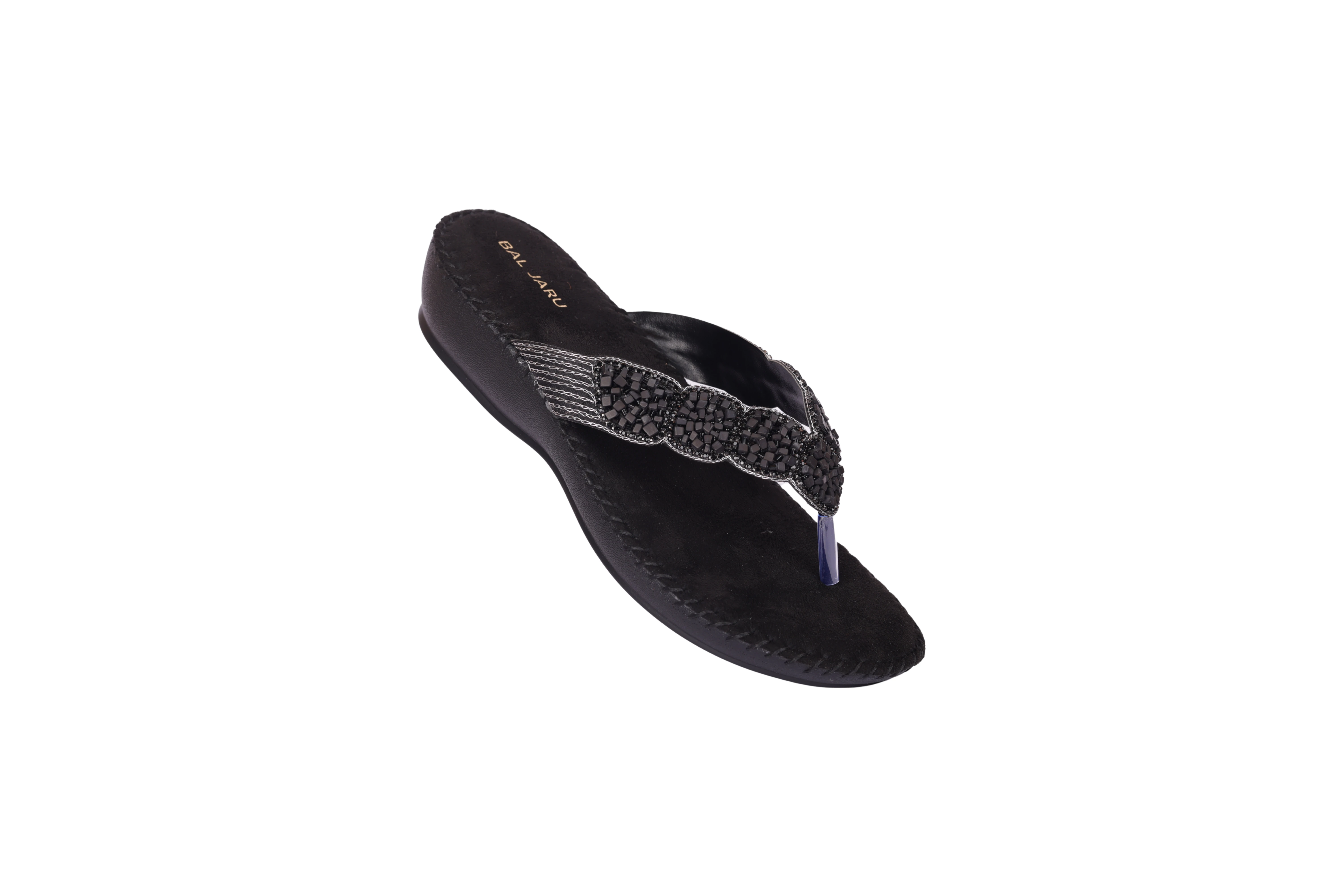 Add subtle shimmer to every step with Baljaru Lyra, a beaded V‑strap flat in sleek Black & Grey designed for cushioned, all‑evening comfort. Intricately set beads create a scalloped sparkle across the upper, while the soft footbed and lightweight outsole provide steady grip for weddings, festive dinners, and weekend outings. Pair with sarees, kurtas, or western co‑ords for a polished finish that stays comfortable from first look to last dance.