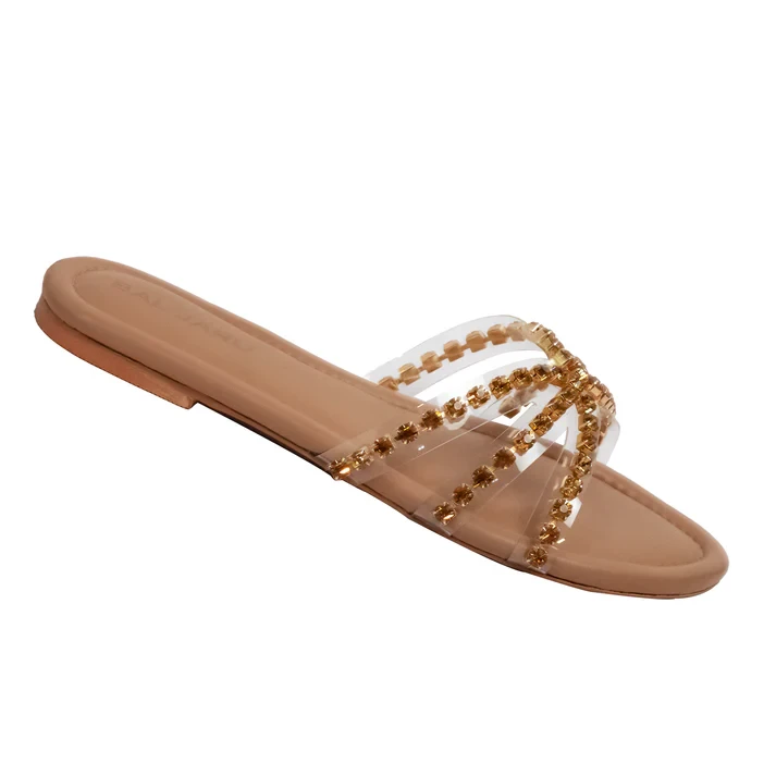 Discover Baljaru Women's Goldstone-Embellished Open Toe Flats, designed for both fashion and comfort. Featuring a transparent upper, cushioned footbed, and textured outsole, these flats are perfect for any season and occasion. The slip-resistant resin outsole and soft anti-sweat lining ensure comfort and durability, while the flexible, shock-absorbent midsole provides all-day support. Ideal for daily walking, casual outings, shopping, or travel, these trendy sandals promise exceptional comfort with every step.